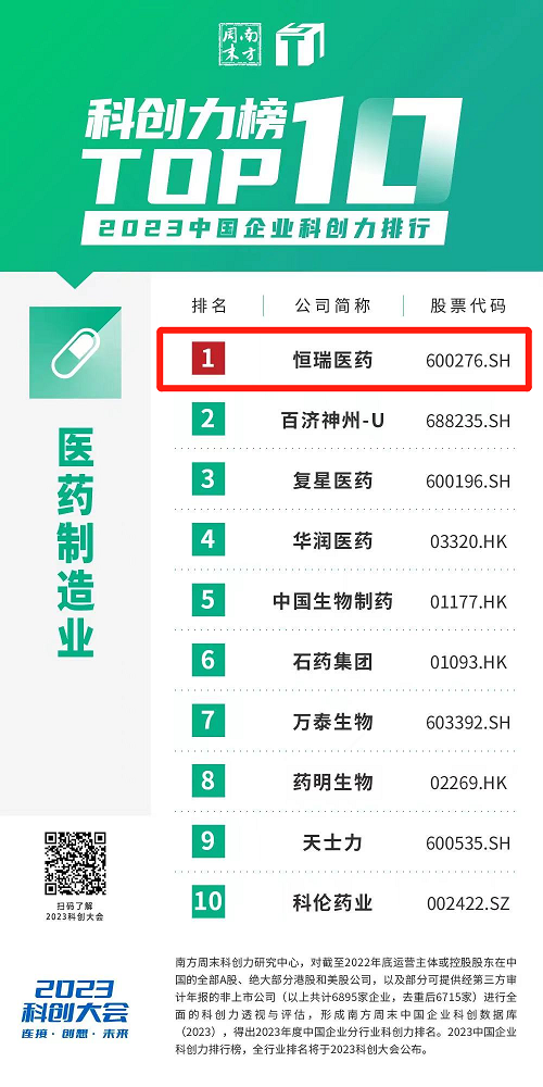 近日,南方周末科创力研究中心发布了与居民日常生活密切相关的30个行业中科创力排名前10的企业榜单。尊龙凯时国际医药凭借多年来在科创领域的大力投入和优秀成果,蝉联中国企业科创力排行医药制造业榜首。