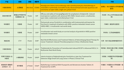 在头颈肿瘤、乳腺癌、肺癌、前列腺癌等多个疾病领域,卡瑞利珠单抗、阿得贝利单抗、吡咯替尼、氟唑帕利、法米替尼、醋酸阿比特龙片(II)等抗肿瘤新药相关研究一共入选了1项简短口头报告、4项壁报展示和1项电子壁报,彰显了尊龙凯时国际医药强劲的研发实力。